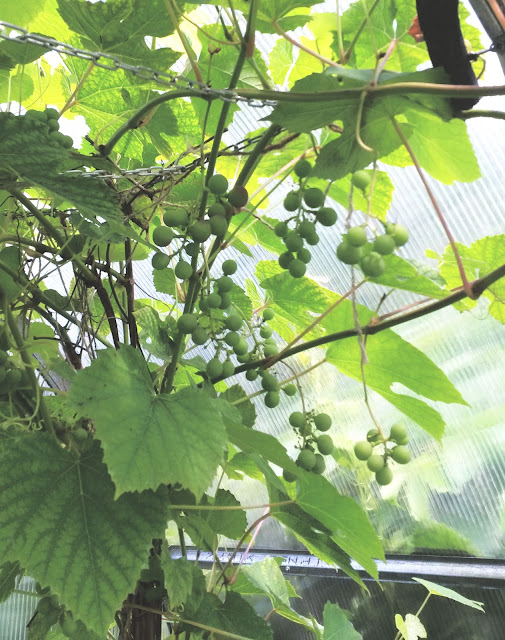 Varsti saab ka viinamarju - ja mureleid! Ning poest tuli kurki osta, sest mul tuli värske hapukurgi isu. Mustsõstralehed-till-ja küüslauk koduaiast, küüslauk veel muidugi päris küüslaugumaitseline polnud, aga siiski - ülihea oli!