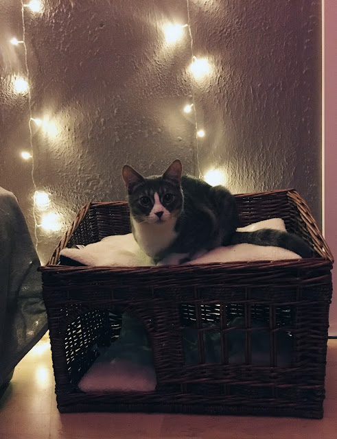 - Kraapimiskarp - selline papist aukudega karp, mille sees ka pallid ja kaasas catnip, alguses justkui korra tundus huvi, aga mitte rohkem. Andsime ka varjupaika, et ehk pakub mõnele sealsele elanikule rohkem huvi.