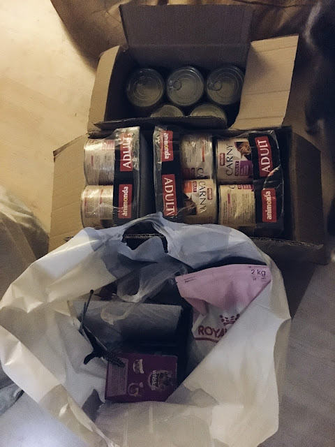 Järgmisel korral tellides oli fookuses juba üks kassimaja, mis mulle hingele jäi ja nii ma selle ära tellisin. Lisaks suurema portsu (24x800) Carny konserve. Lisaks olid pakis ka 15 kg Royali koeratoit ja mõned whiskasy konservid, mis ära andsin. Samuti andsin ära ühe paki kassikrõbinad, ühed tegime pooleks (jätsime enda kassile maitsemiseks) ja üks terve pakk jäi veel meile. Igatahes mõtlesin, et kuller teeb nalja kui helistas "Mul on Teile alusega kaupa" ja, et see on ehk töökõne, aga reaalselt tuligi see kott ühel pisikesel euroalusel! Ja see oli raske! Hea, et ma tööl olin - vastasel juhul ma ei tea kui oleksin üksi kodus olnud ja kuller oleks selle majaette toonud. Kolmandale poleks ta ealeski suutnud seda vedada (tõstis autostki hargiga maha). Tööl sain vähemalt paki lahti harutada.