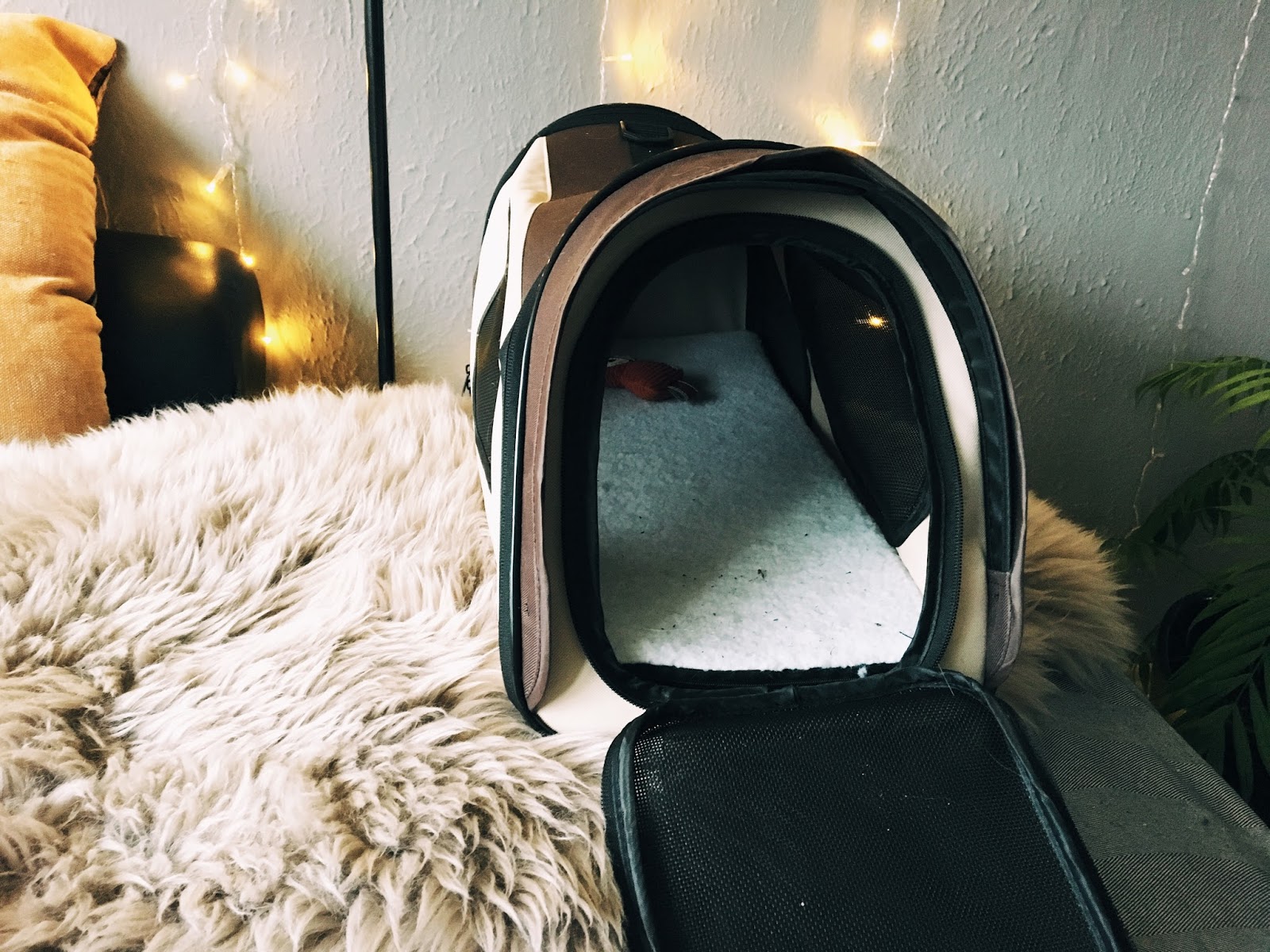 Kusjuures selle koti suurim pluss on see, et see on kokuklapitav ja tuleb eraldi ümbriskotiga - ehk, kes näiteks harva reisivad siis see võtab kokku lapituna ülivähe ruumi! Samas on kott tegelikult üpriski suur ja mahukas, kassil sees kitsas pole, see pehemndus põhjas tuleb samuti kotiga kaasa. Võrgud on ikkagi plastikulised, et ei pea kartma, et kass sealt end läbi murrab. Kotil lisaks ka õlarihm ja taga üpriski mahukas tasku (mahutab ära näiteks kassidokumendid, traksid, flexi jne). Nagu pildilt nähagi siis enne kui maja meile jõudis oli kott kasutuses ka pesana/peidukana.