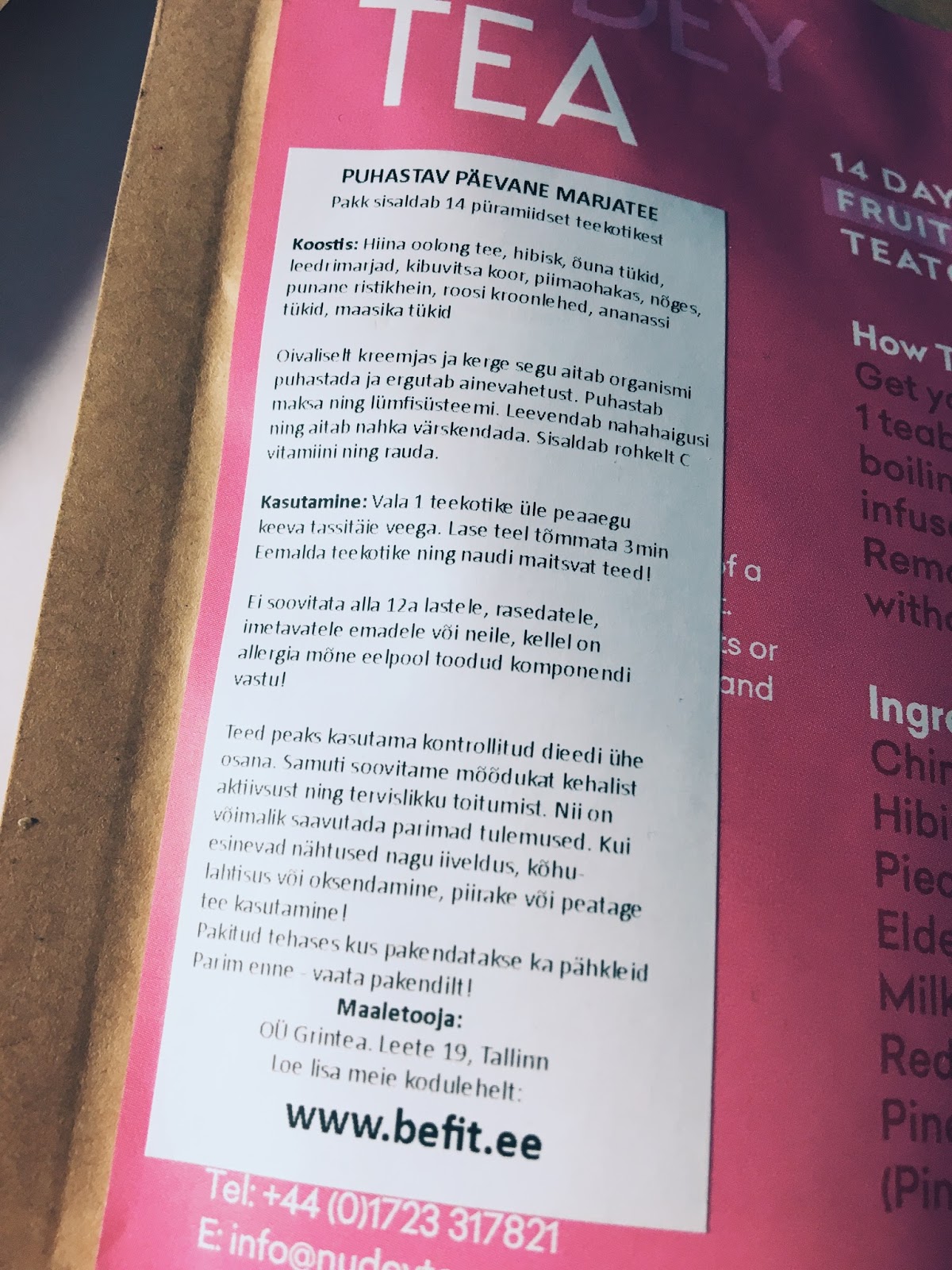 Ostsin endale ka salongist kahe tee komplekti - teatox ehk tea+detox. Minu valikusse sai siis see limited edition variant - tegelikult puhtalt seepärast, et õhtune tee on kakaoga! Tegelikult ei ole ma eriti jõudnud igapäevaselt nende teede joomiseni kuna plaan oli - lihtsalt niiiii kiire on olnud. Mis mulle nende teede juures meeldib on see, et need on teepakikestes, mitte puruteed. Lisaks see roosas tee on põhimõtteliselt täielikult marjatee ehk teekotis on näha kuivatatud marju ja see tee maitseb lihtsalt imehea! Mitte mingisugust ebameeldivat, keemia vmt maitset.