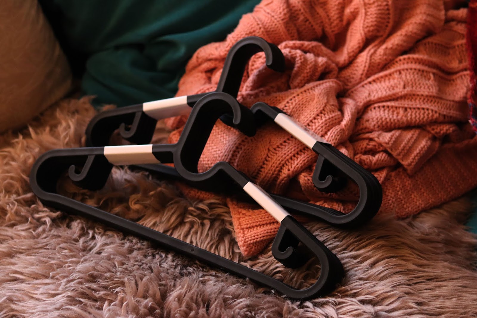 Riidepuid tahtsin tegelikult neid sametkattega (või traadist), aga peamine eesmärk oli soodsa hinnaga erinevad laiad puidust ja plastikust riidepuud õhemate vastu välja vahetada, et rohkem riideid rippuma mahuks. Ikeas olid õhukesed plastikust riidepuud (tunduvad tugevad) kümnene komplekt 1,49€! Pisike neljane kätekuivatusrätikute komplekt oli 1,99€. Suuruste ja värvide valik oli korralik.